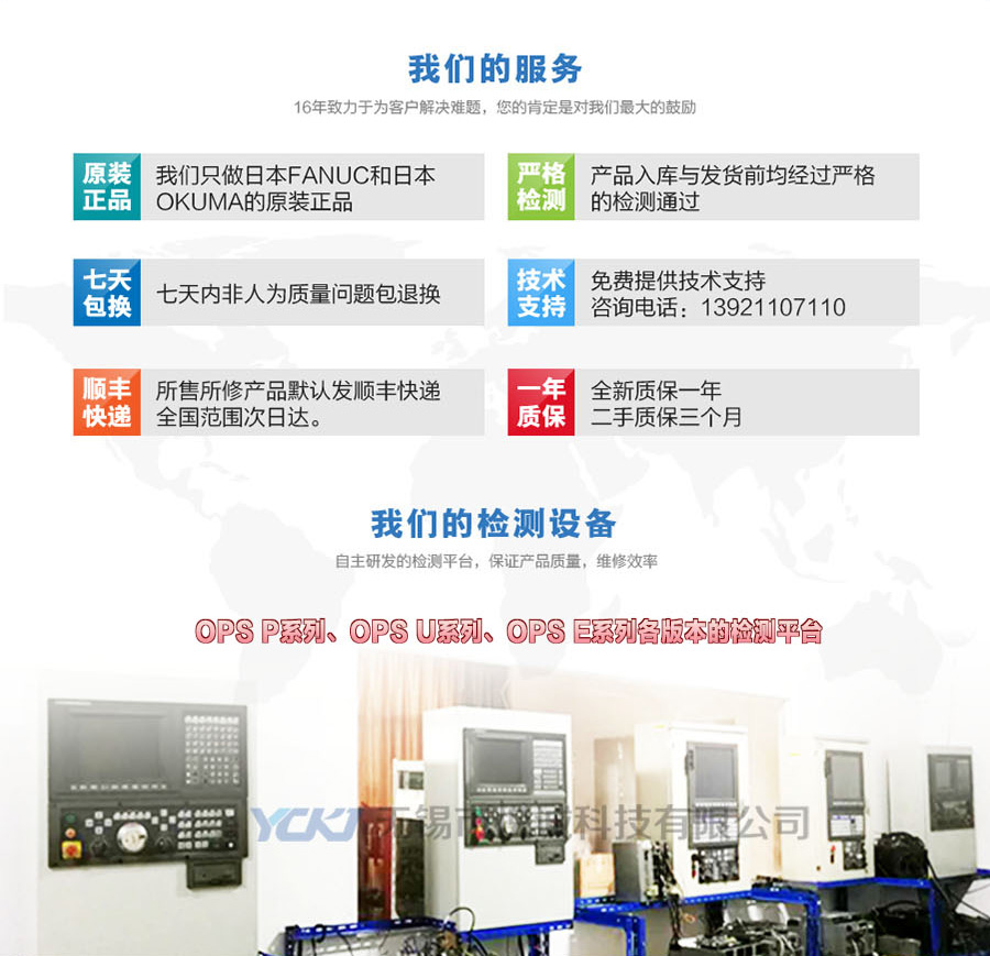 无锡市悦诚科技有限公司是一家以OKUMA系统检测以及维修为主的科技企业,公司专注于数控系统维修近20年。公司经过不断的探所与创新,培养出一支技术精湛的队伍,研发出一整套测试设备,积累出一套完善的测试维修技术,能迅速准确的诊断出电路板故障源,并有效排除。我们能啃硬骨头,敢打硬仗,得到客户一致的好评。